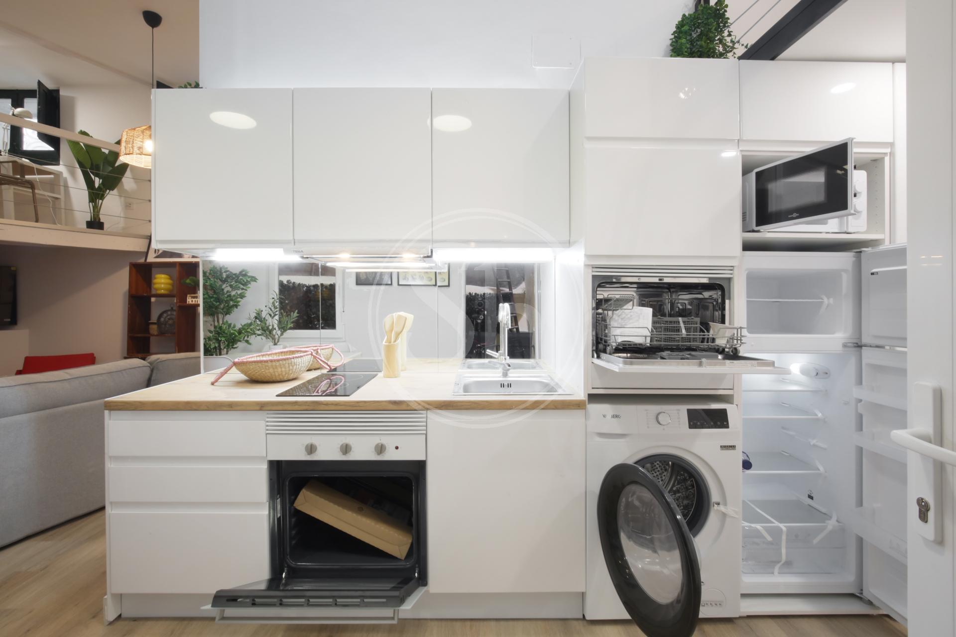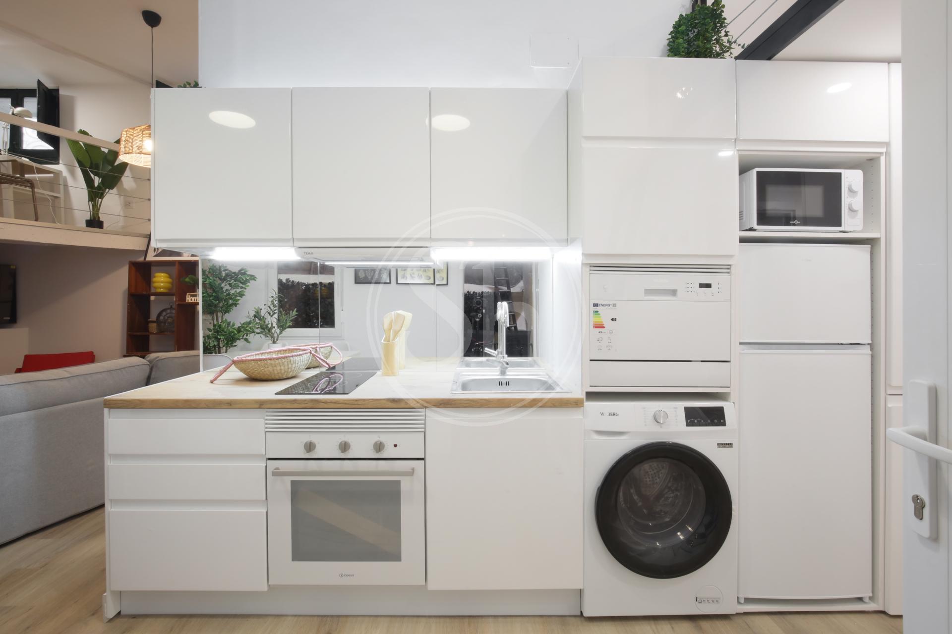 La cocina está totalmente equipada con lavavajillas, lavadora, horno, vitrocerámica y microondas.